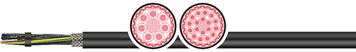 Силовой контрольный, соединительный кабель для электрических установок для передачи данных и сигналов без помех для стационарной прокладки и гибкого применения без растягивающей нагрузки , без принудительного управления движением. Применяется для прокладки в сухих и влажных и мокрых помещениях (в том числе при наличии смеси воды и масел), но не снаружи и не для прокладки в земле. Для наружной прокладки, но не для прокладки в землю.