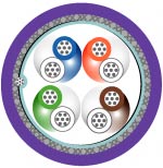 Описание конструкции Кабель состоит из четырех витых пар, сплетенных вместе и экранированных алюминиевой фольгой и медной оплеткой. Экранирующая фольга находится в контакте с дренажным проводом по всей длине кабеля. Конструкция защищена внешней оболочкой из огнестойкого поливинилхлорида.