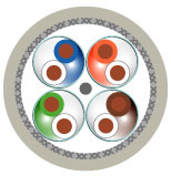 Краткое описание: Кабель передачи данных в двойном экране поддерживает работу приложений типа 10GBASE-T, согласно требованиям стандарта IEEE 802.3an. Кабель протестирован на соответствие всем требованиям технологии 10 GbE и превосходит требования стандарта IEC 61156-5 к категории 7 (600 МГц), 7а (1000 МГц), 6а (500 МГц), 6 (250 МГц) и 5е. Кабель превосходит стандарты категории 7а при использовании с соответствующими разъемами. Кабель состоит из 4 индивидуально экранированных витых пар в общем экране из оплетки, защищенных оболочкой из огнестойкого малодымного безгалогенного компаунда (FR-LSZH).