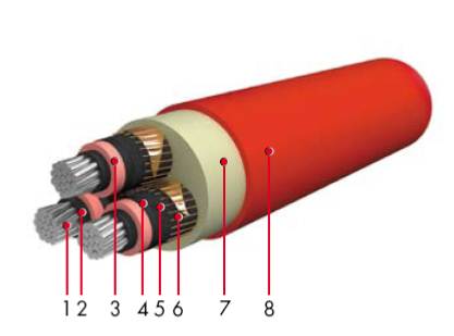 - 1: алюминиевая круглая уплотненная токопроводящая жила