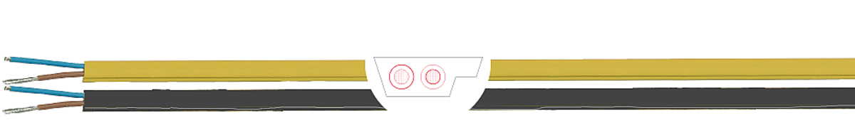 передача данных и электроэнергии осуществляется с помощью неэкранированного, геометрически кодированного плоского двужильного кабеля.