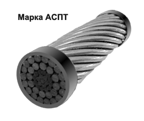 Провод не изолированный из термостойкого алюминиево-циркониевого сплава с сердечником из стальной проволоки, планированной алюминием, с рабочей температурой до 150 градусов.Предназначен для передачи электрической энергии в воздушных сетях. Пример записи условного обозначения провода с сердечником номинальным сечением 24 м м² и наружным повивом проволок из алюминиевого-циркониевого сплава номинальным сечением 150 м м² при его заказе и в документации другого изделия: «Провод АСПТ АТ1/20SA 150/24.»