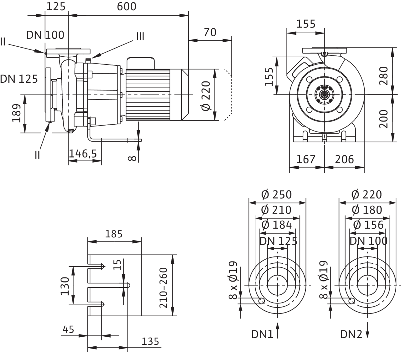 | Номинальный внутренний диаметр фланца (на стороне всасывания) | DN 125 |