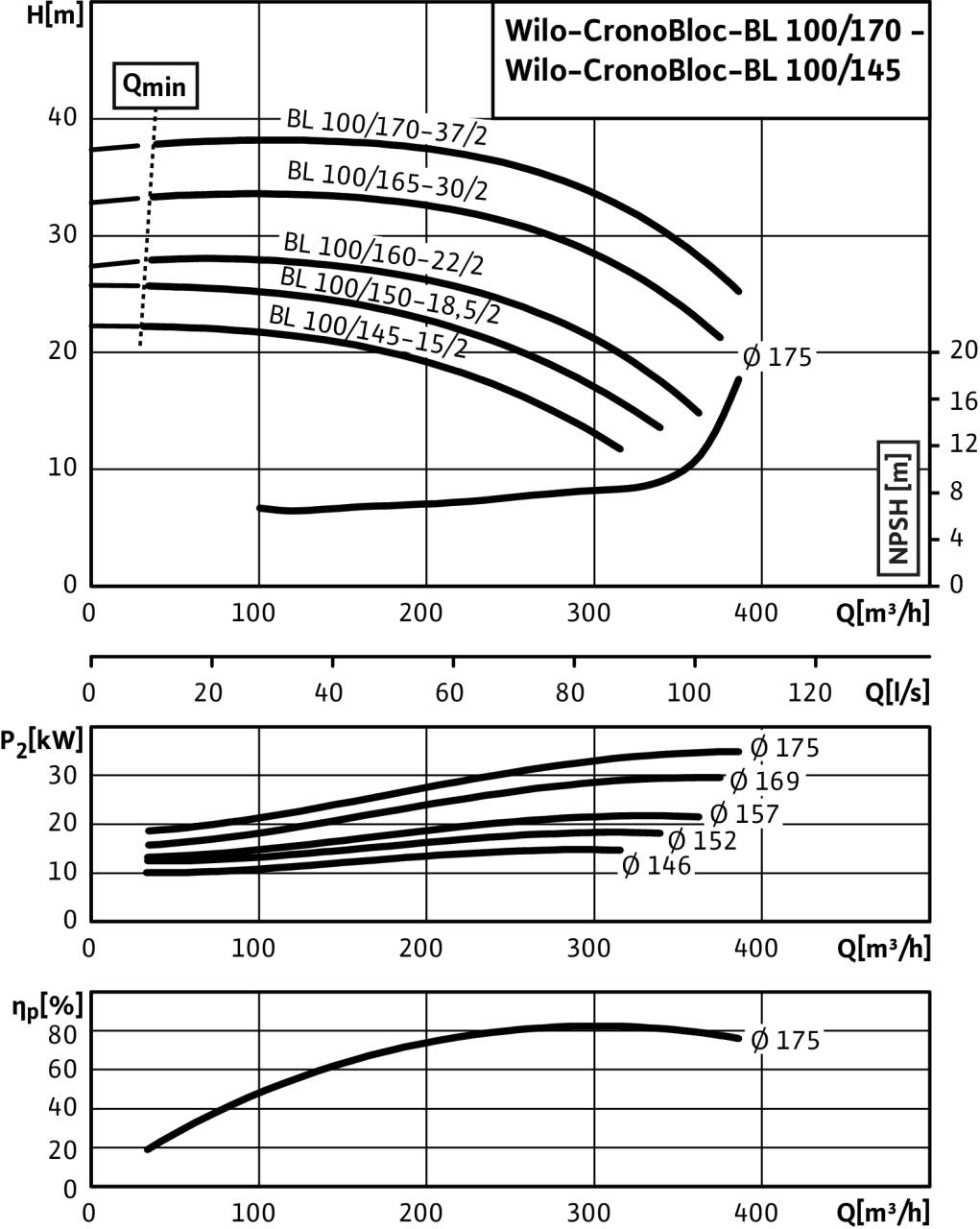 Насос с макс. диаметром рабочего колеса для определения MEIBL100/170-37/2