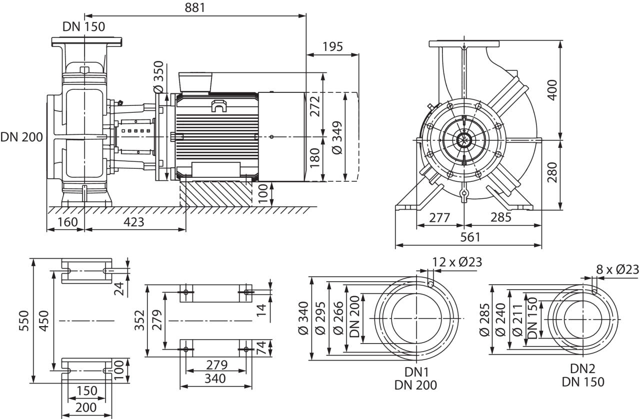 Номинальный внутренний диаметр фланца (на стороне всасывания)DN 200