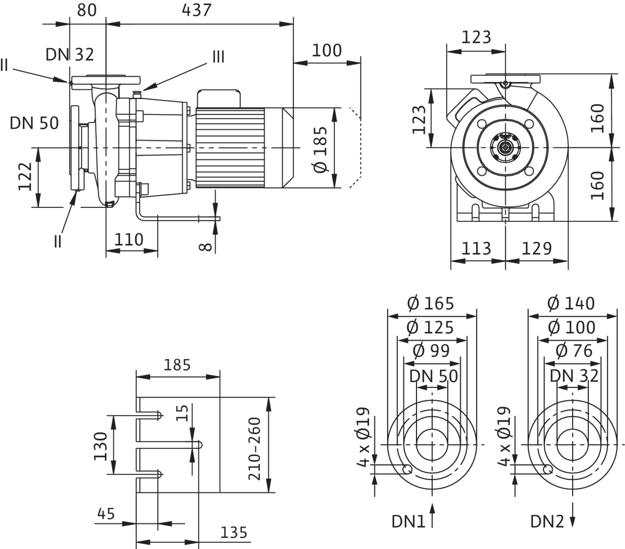 II отверстие для измерения давления R1/8; III удаление воздуха R1/8