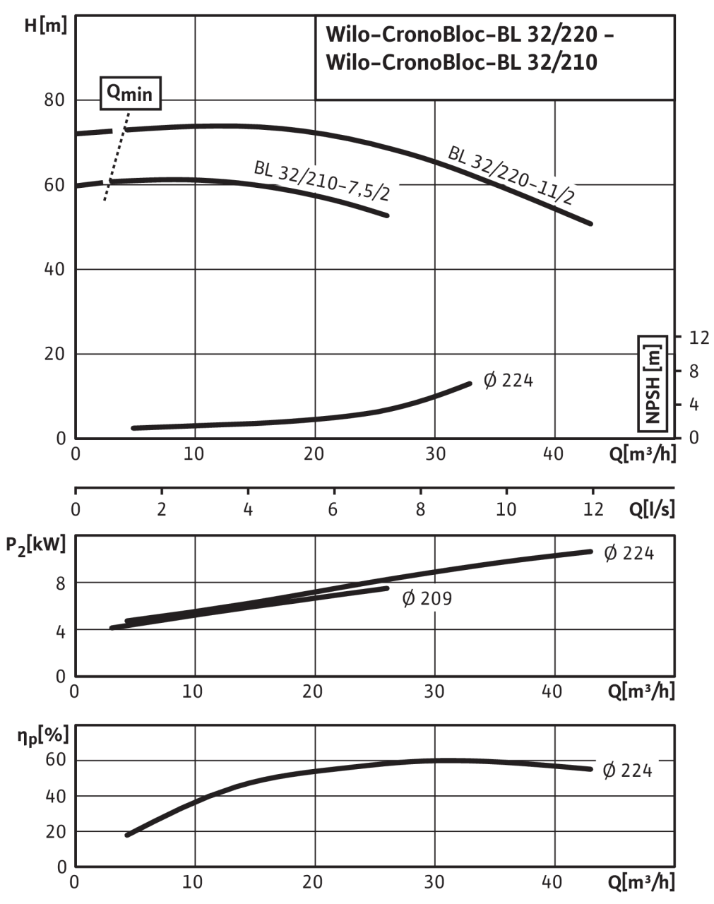 Насос с макс. диаметром рабочего колеса для определения MEIBL32/220-11/2