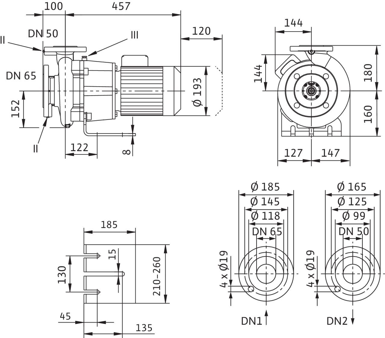 | Номинальный внутренний диаметр фланца (на стороне всасывания) | DN 65 |