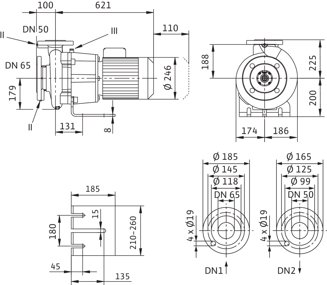 | Номинальный внутренний диаметр фланца (на стороне всасывания) | DN 65 |