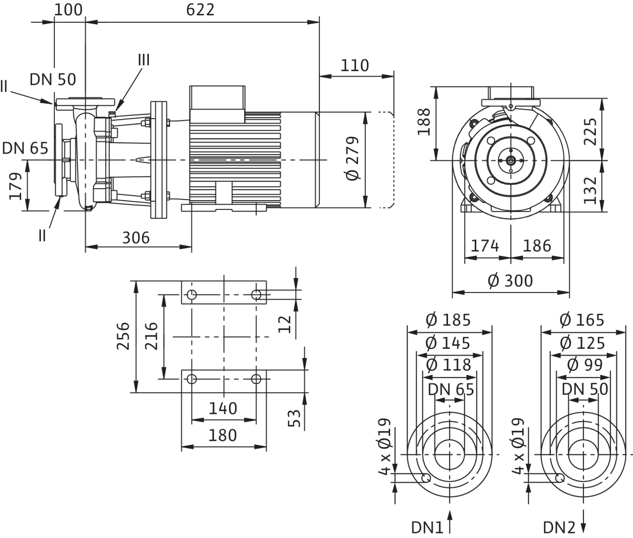 II отверстие для измерения давления R1/8; III удаление воздуха R1/8