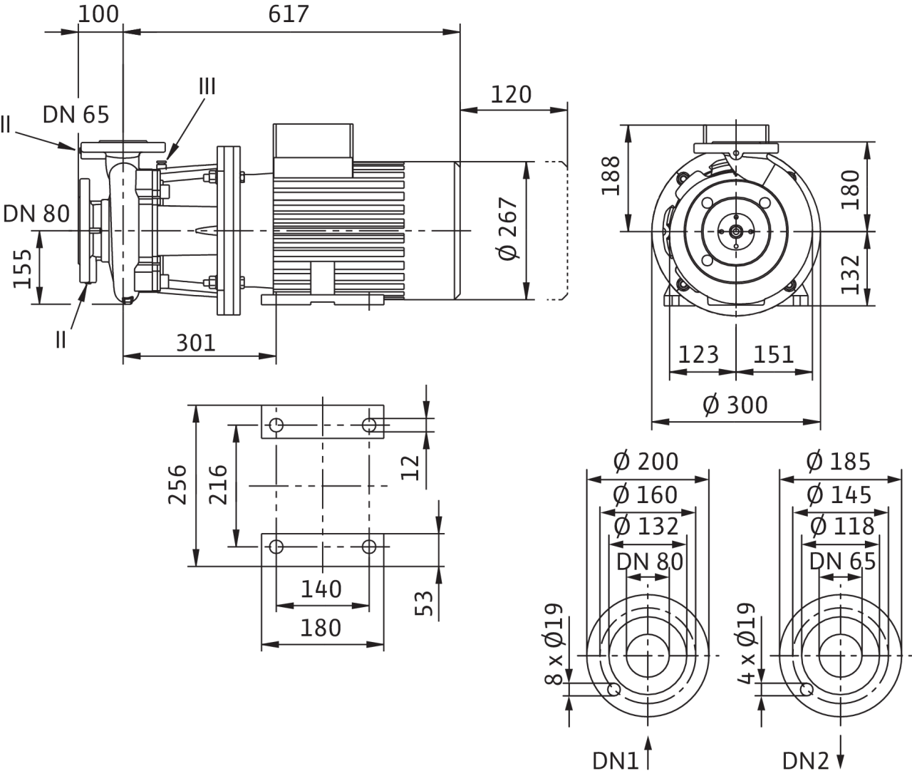 II отверстие для измерения давления R1/8; III удаление воздуха R1/8