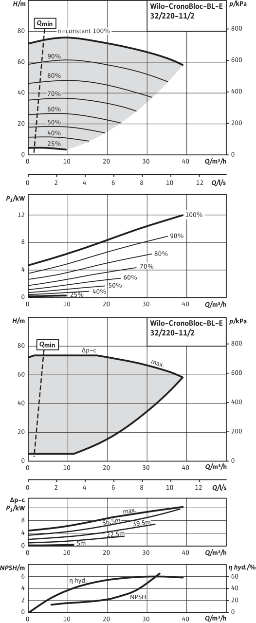 Одноступенчатый центробежный насос с сухим ротором блочного типа для установки на фундаменте со встроенным частотным преобразователем для электронного регулирования в т. ч. постоянного перепада давления (Δp-c). Насос можно эксплуатировать в режиме работы Δp-c только с внешним дифференциальным датчиком давления (комплект дифференциального датчика давления); его подключение не выполняется на корпусе насоса. Устройство CronoBloc-BL-E предназначено для перекачивания воды систем отопления (согласно VDI 2035), холодной воды и водогликолевых смесей без абразивных веществ в системах отопления, кондиционирования и охлаждения.