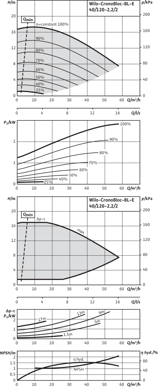 Одноступенчатый центробежный насос с сухим ротором блочного типа для установки на фундаменте со встроенным частотным преобразователем для электронного регулирования в т. ч. постоянного перепада давления (Δp-c). Насос можно эксплуатировать в режиме работы Δp-c только с внешним дифференциальным датчиком давления (комплект дифференциального датчика давления); его подключение не выполняется на корпусе насоса. Устройство CronoBloc-BL-E предназначено для перекачивания воды систем отопления (согласно VDI 2035), холодной воды и водогликолевых смесей без абразивных веществ в системах отопления, кондиционирования и охлаждения.