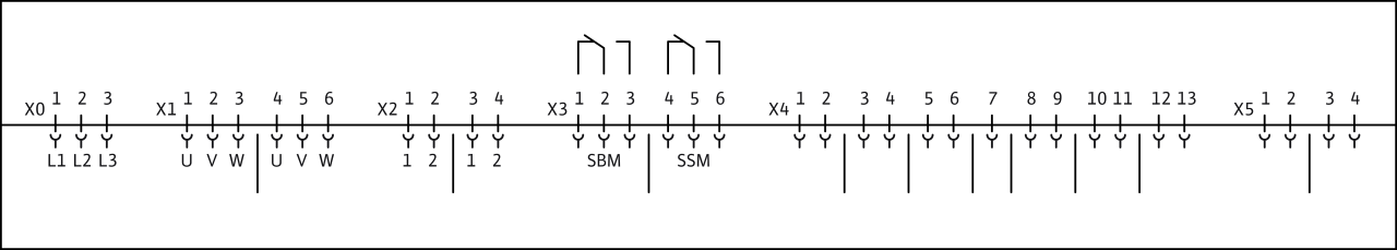 x3: беспотенциальные контакты: 1–3 – SBM (обобщенная сигнализация рабочего состояния); 4–6 – SSM (обобщенная сигнализация неисправности)
