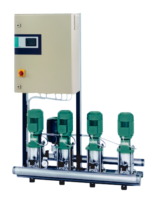 Компактная установка повышения давления согласно стандарту DIN 1988 и DIN EN 806, для прямого или опосредованного подсоединения. Состоит из нормальновсасывающих параллельно подключенных вертикальных высоконапорных центробежных насосов из нержавеющей стали с сухим ротором. Готовность к подключению, установка на опорной раме с системой трубопроводов из нержавеющей стали, включая прибор управления со всеми необходимыми измерительными и регулировочными устройствами.