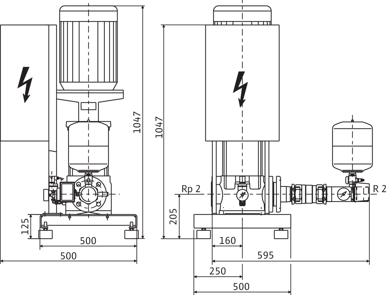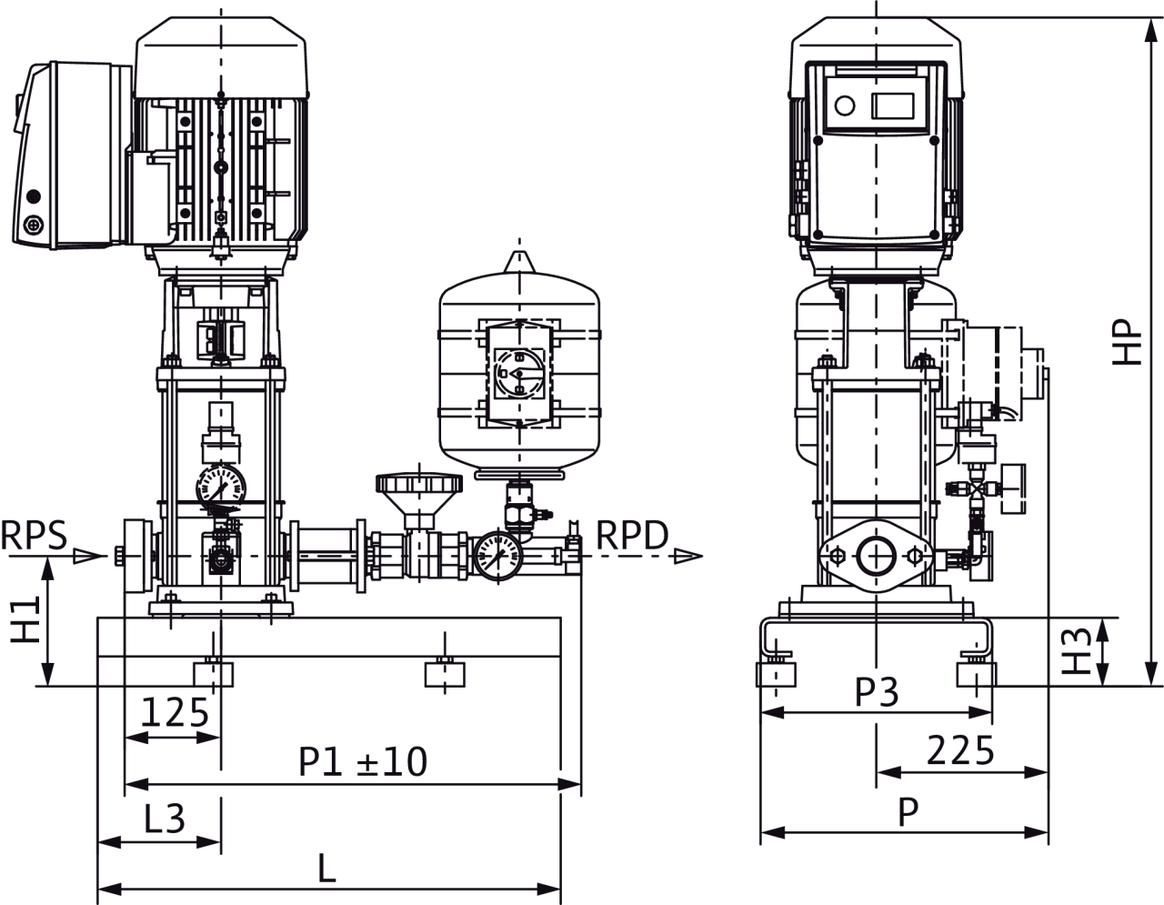 Установка для водоснабжения в качестве компактной установки для повышения давления или в качестве средства водоснабжения для подключения к приемному резервуару/водопроводной сети. Состоит из: нормальновсасывающего вертикального многоступенчатого высоконапорного центробежного насоса из нержавеющей стали с электродвигателем стандарта IE2. Манжетное уплотнение посредством не зависящего от направления вращения скользящего торцового уплотнения. Электродвигатель со встроенным частотным преобразователем с воздушным охлаждением и плавной регулировкой частоты вращения от 24 Гц до макс. 60 Гц. Установлена на оцинкованной фундаментной раме с регулируемой по высоте вибропоглощающей опорой; мембранный напорный бак (емкостью 8 л) с проточным оборудованием, соответствующим стандарту DIN 4807, встроенным обратным клапаном, датчиком давления (4–20 мА) и манометром для автоматического регулирования установки с функцией p = постоянное. Бесступенчатая установка заданного значения напора одной кнопкой на частотном преобразователе. Автоматическое определение нулевой подачи и отключение насоса. Встроенное реле электродвигателя с электронным контролем тока.