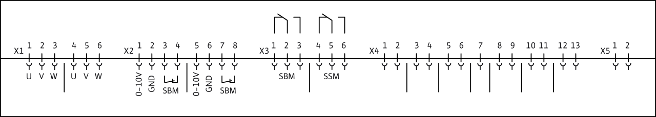 x3: Беспотенциальные контакты (сигнализация); 1–3 – SBM (обобщенная сигнализация рабочего состояния); 4–6 – SSM (обобщенная сигнализация неисправности)