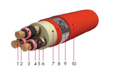 - 3: изоляция из сшитой этиленпропиленовой резины (EPR)