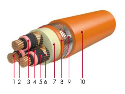 - 2: экструдированный экран по ТПЖ из полупроводящего материала