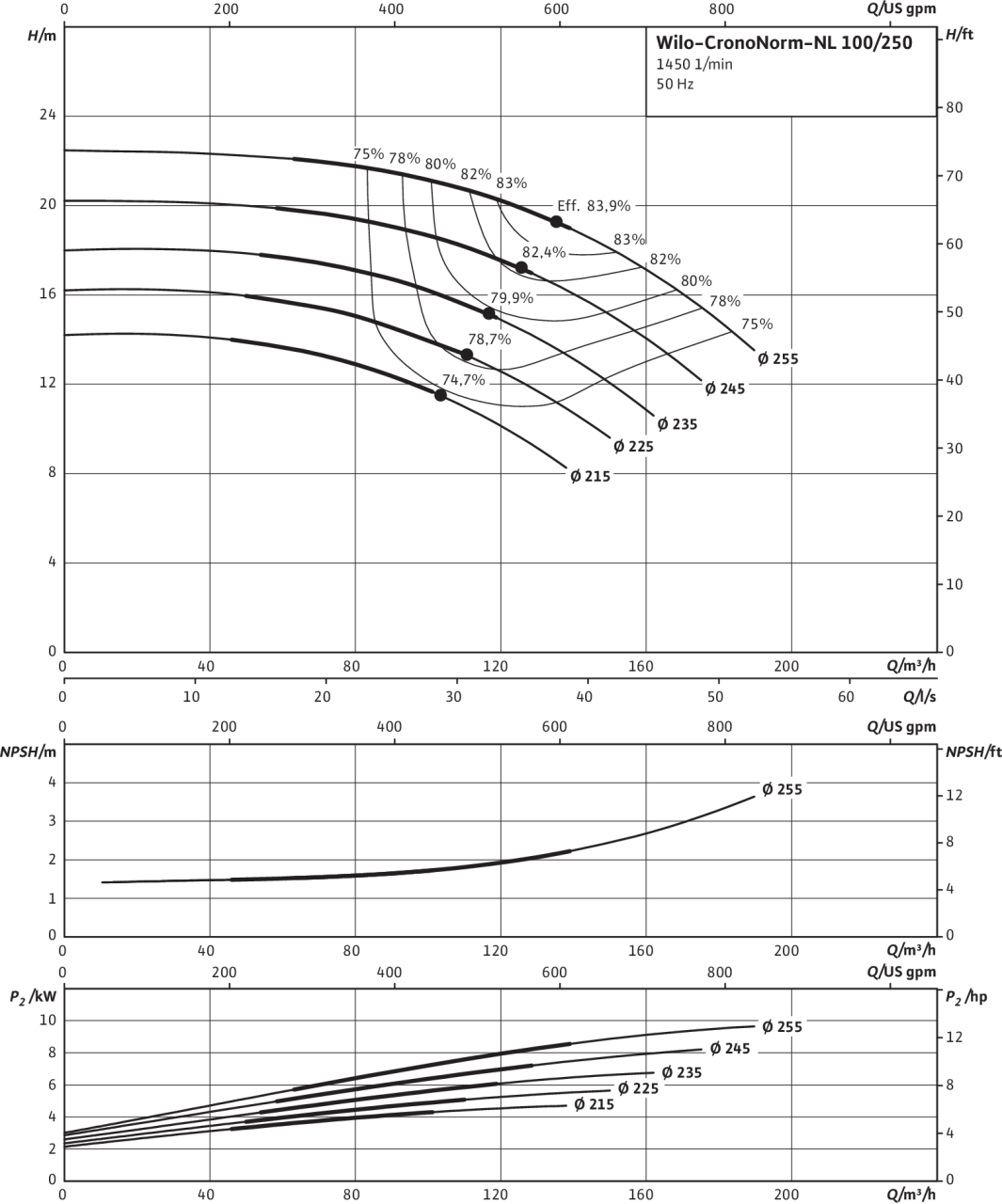 | Номинальный внутренний диаметр фланца (с напорной стороны) | DN 100 |