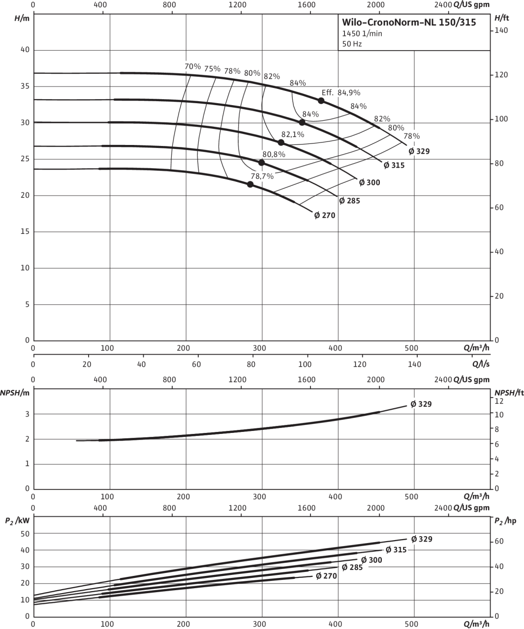 Электродвигатель IEC с 3 термодатчиками. Уплотнение вала посредством скользящего торцового уплотнения до температуры 120 В°C. Корпус из серого чугуна, вал из нержавеющей стали, рабочее колесо из серого чугуна (рабочее колесо из бронзы доступно за дополнительную плату). Электродвигатели с технологией IE3.
