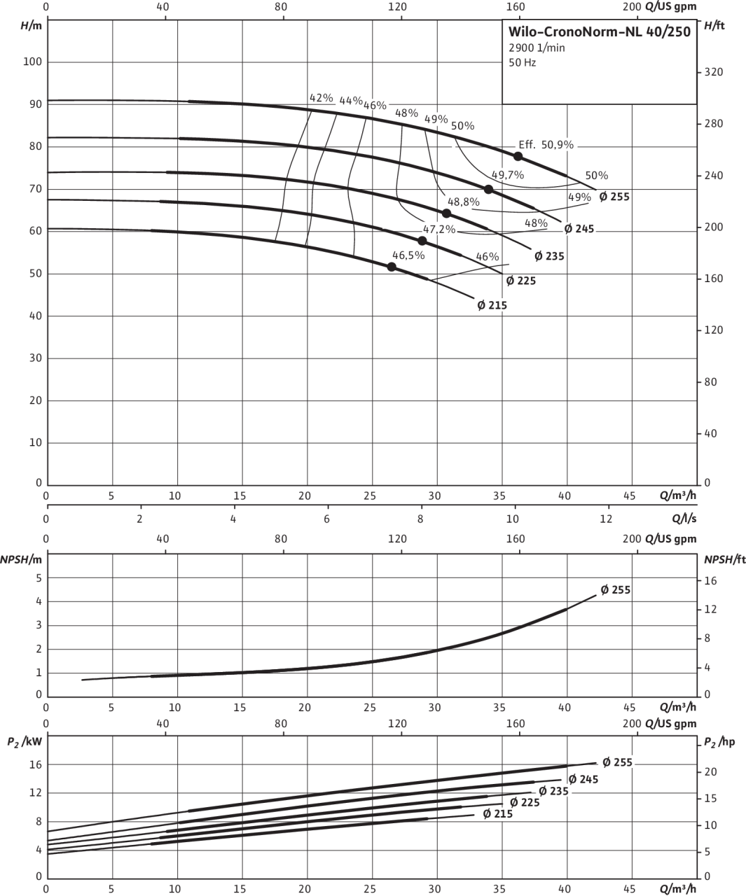 Электродвигатель IEC с 3 термодатчиками. Уплотнение вала посредством скользящего торцового уплотнения до температуры 120 В°C. Корпус из серого чугуна, вал из нержавеющей стали, рабочее колесо из серого чугуна (рабочее колесо из бронзы доступно за дополнительную плату). Электродвигатели с технологией IE3.