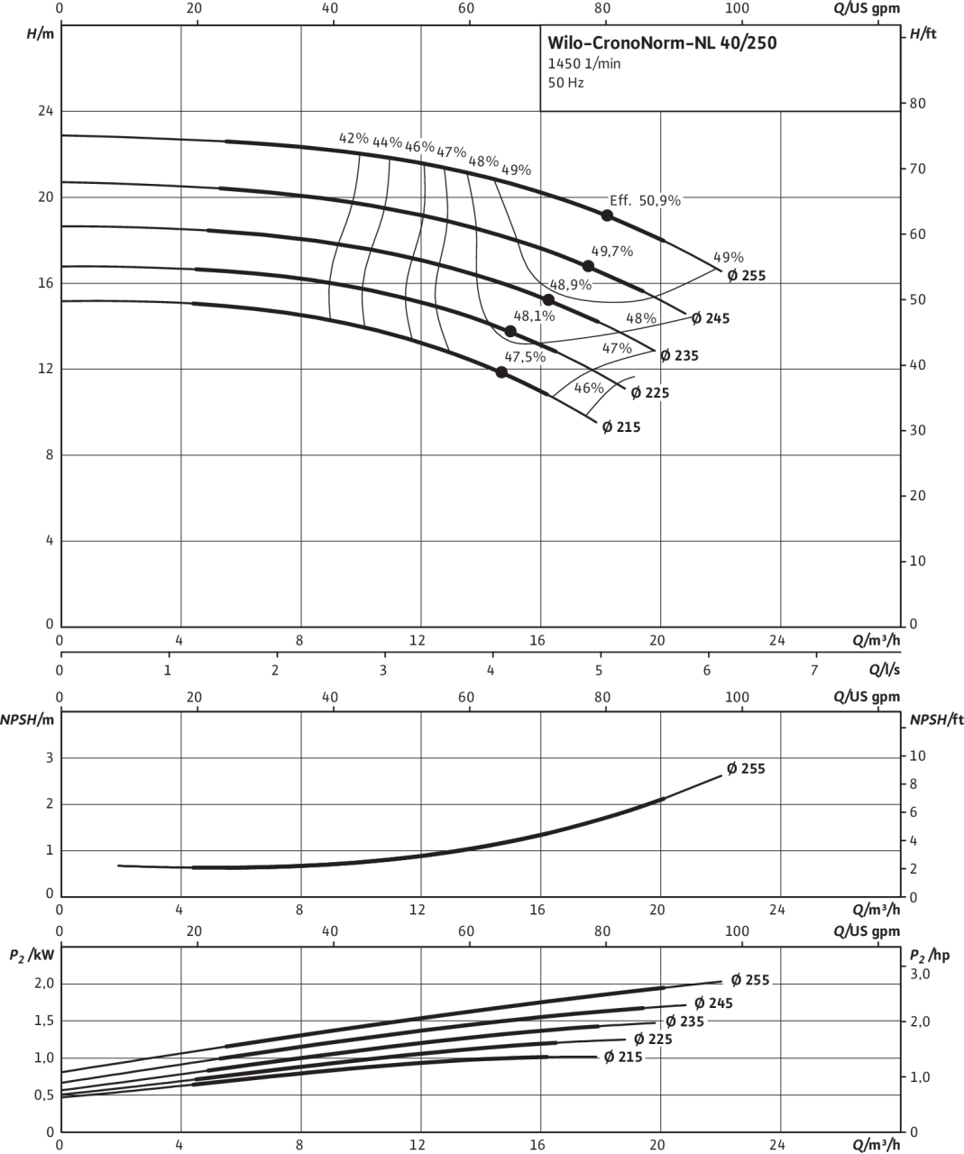 | Номинальный внутренний диаметр фланца (с напорной стороны) | DN 40 |