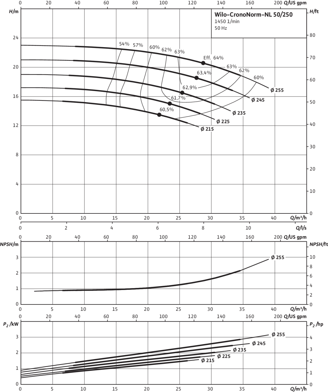 | Номинальный внутренний диаметр фланца (с напорной стороны) | DN 50 |
