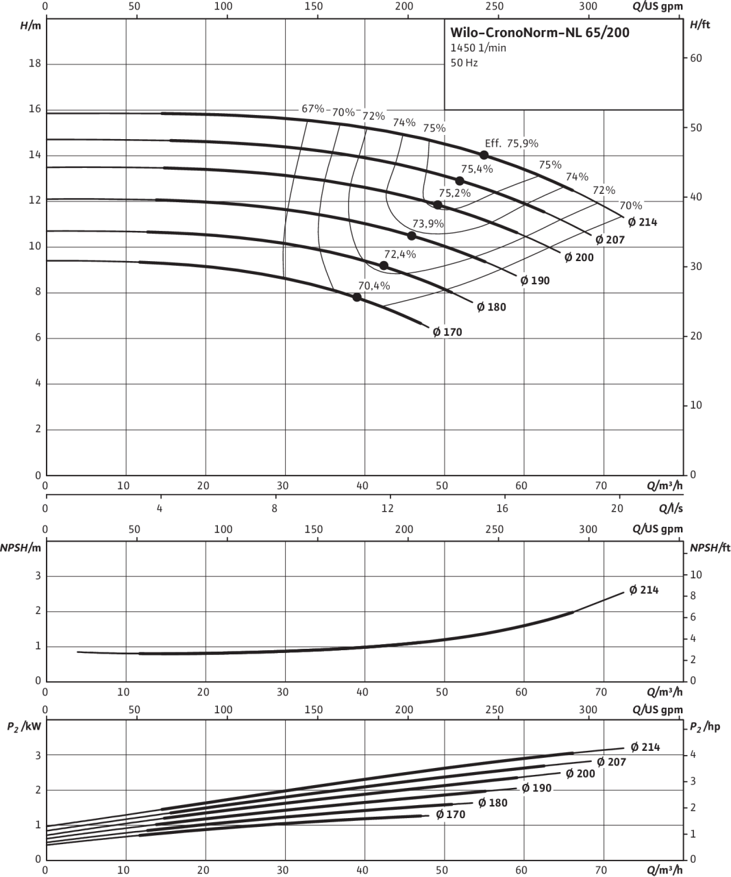 | Номинальный внутренний диаметр фланца (с напорной стороны) | DN 65 |