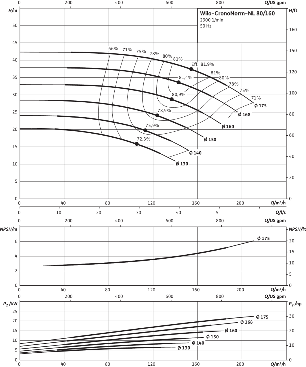 | Номинальный внутренний диаметр фланца (с напорной стороны) | DN 80 |