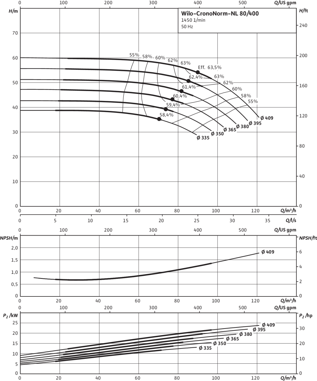 Электродвигатель IEC с 3 термодатчиками. Уплотнение вала посредством скользящего торцового уплотнения до температуры 120 В°C. Корпус из серого чугуна, вал из нержавеющей стали, рабочее колесо из серого чугуна (рабочее колесо из бронзы доступно за дополнительную плату). Электродвигатели с технологией IE3.