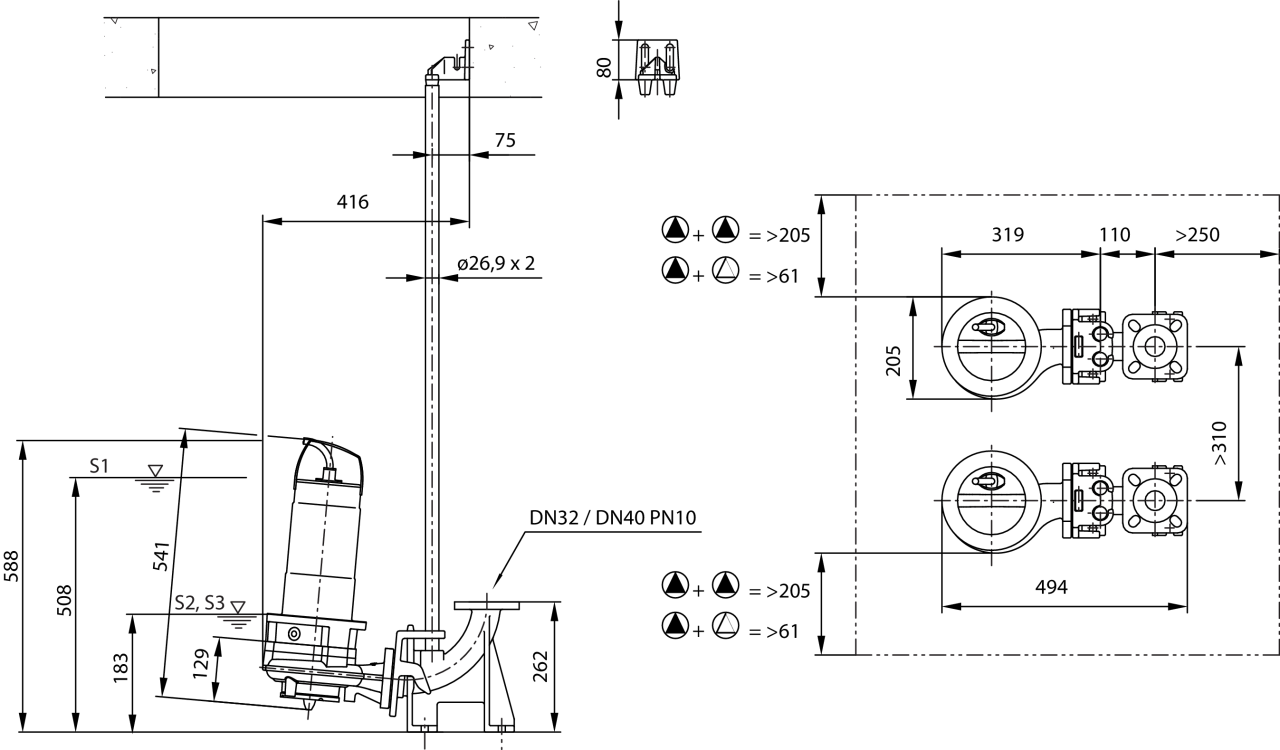 Wilo-Rexa CUT GI03.26../GI03.29.. - Стационарная установка в погруженном состоянии