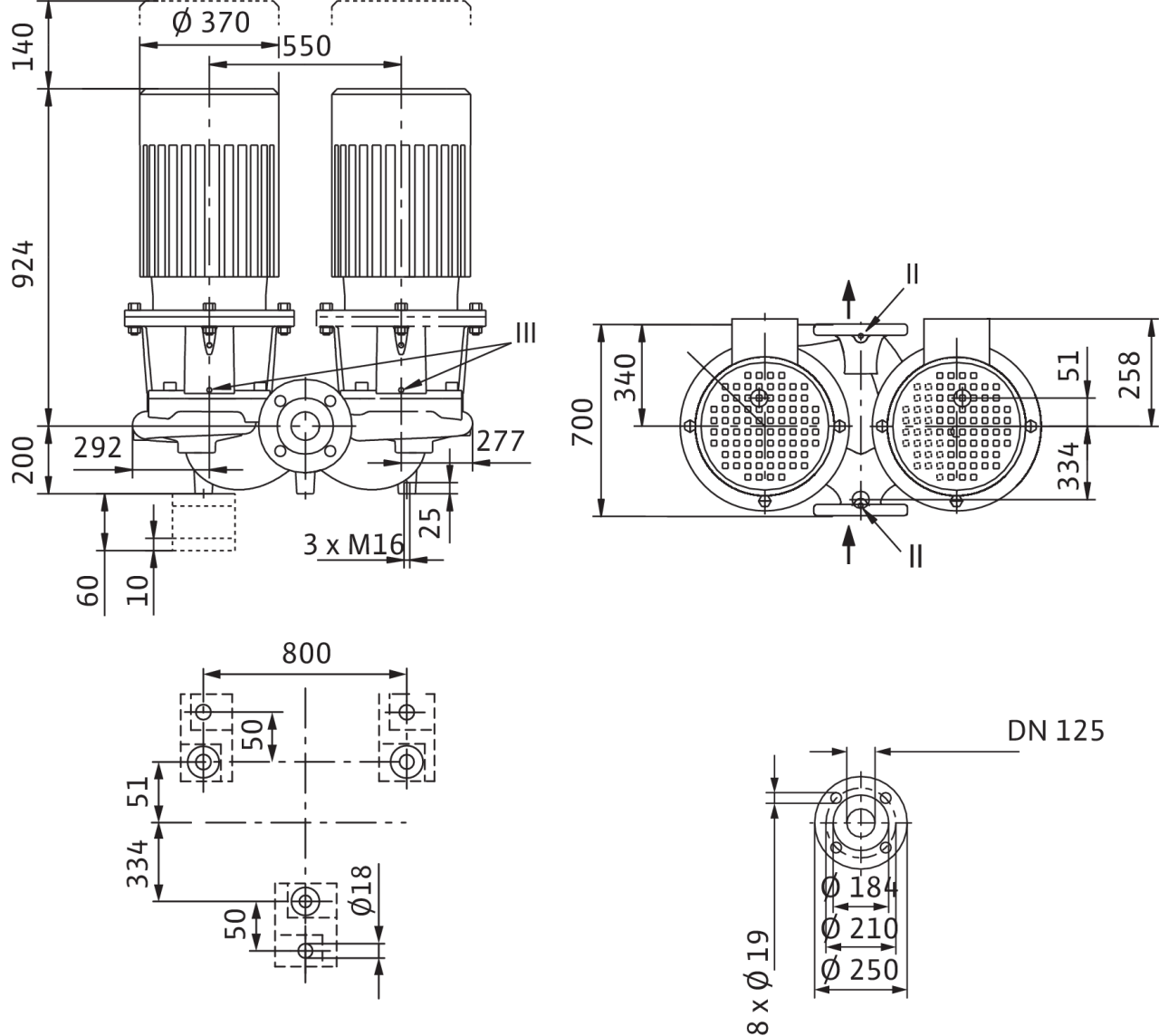 II отверстие для измерения давления R1/8; III удаление воздуха R1/8