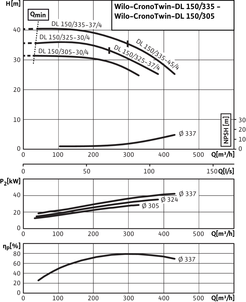 Насос с макс. диаметром рабочего колеса для определения MEIIL150/335-45/4