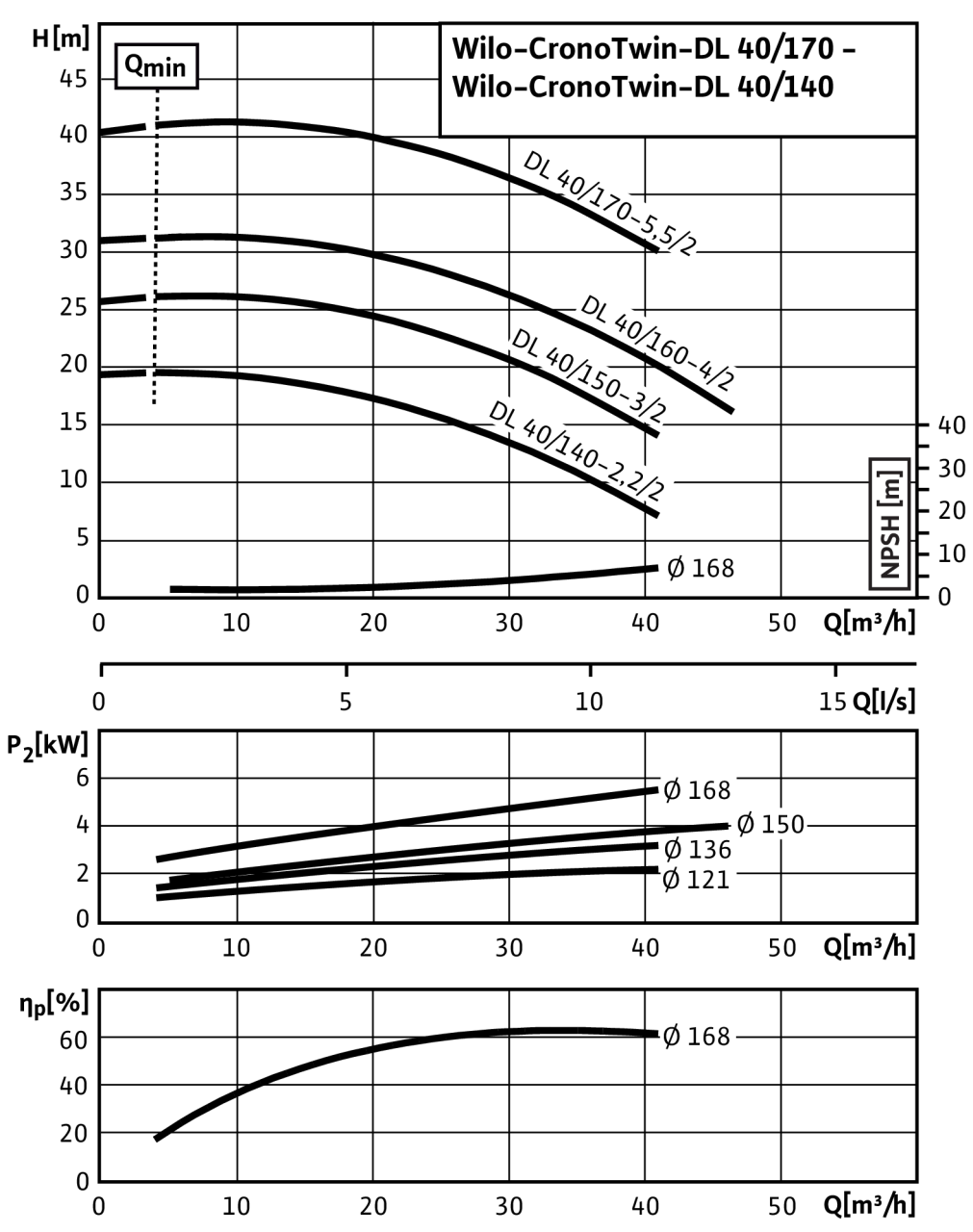 Насос с макс. диаметром рабочего колеса для определения MEIIL40/170-5,5/2