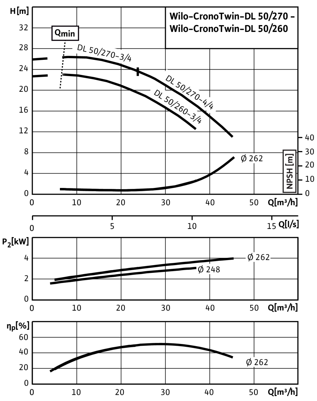 Насос с макс. диаметром рабочего колеса для определения MEIIL50/270-4/4