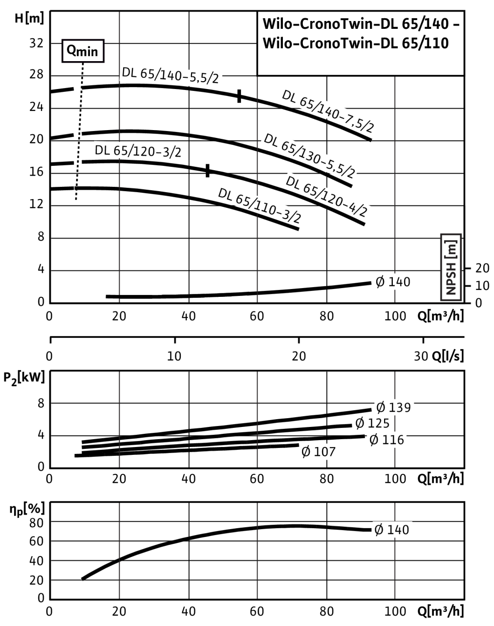 Насос с макс. диаметром рабочего колеса для определения MEIIL65/140-7,5/2