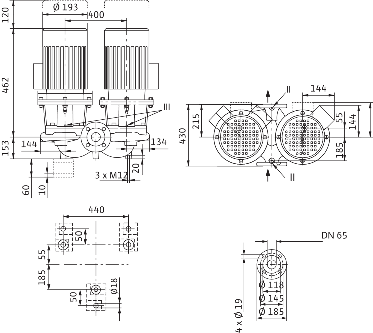 II отверстие для измерения давления R1/8; III удаление воздуха R1/8