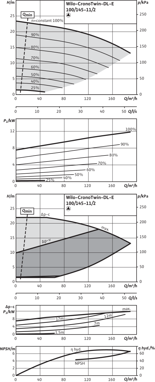 Технический паспорт Характеристики 2-полюсный, работа одного насоса Допустимая перекачиваемая среда (другие среды по запросу) Вода систем отопления (согласно VDI 2035) • Водогликолевая смесь (при доле гликоля 20-40 об. % и температуре перекачиваемой...