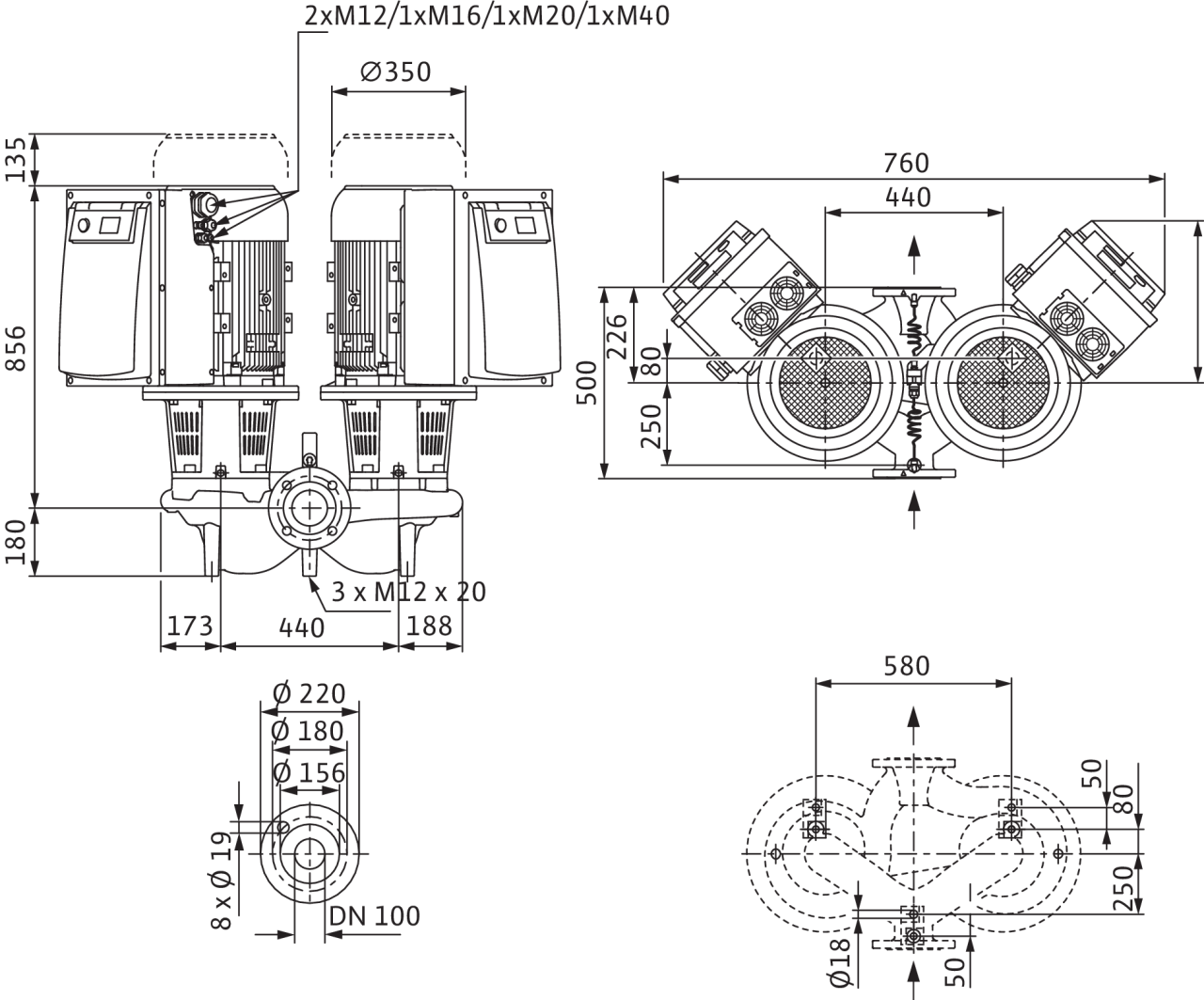 | Диапазон температур при макс. температуре окружающей среды +40 В°C | -20...+140 В°C (в зависимости от перекачиваемой среды) |