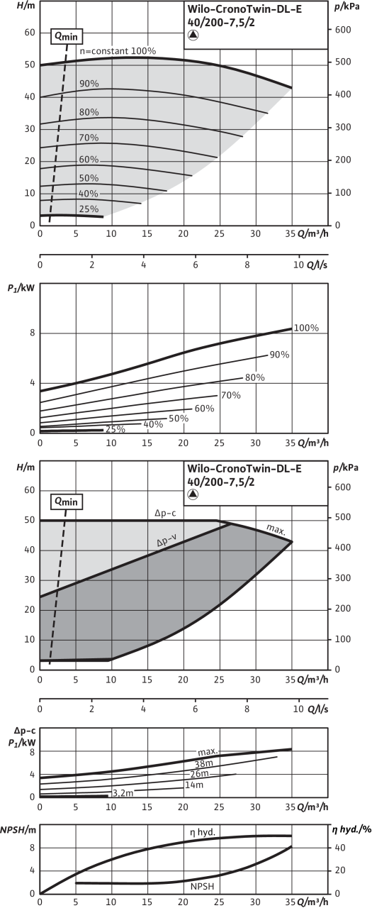 | Диапазон температур при макс. температуре окружающей среды +40 В°C | -20...+140 В°C (в зависимости от перекачиваемой среды) |