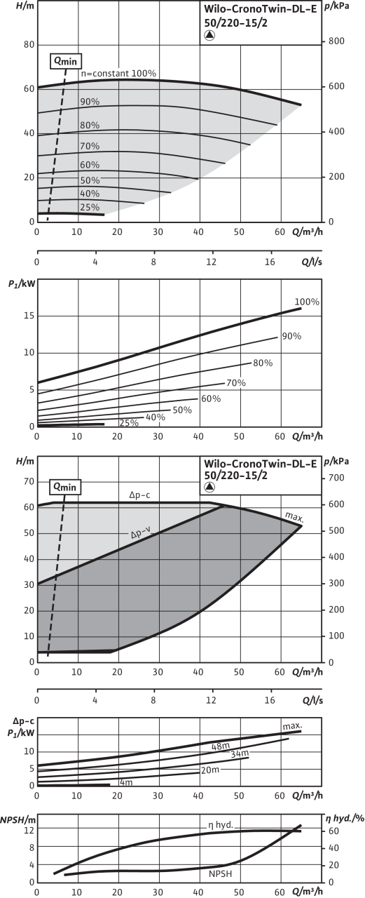 Технический паспорт Характеристики 2-полюсный, работа одного насоса Допустимая перекачиваемая среда (другие среды по запросу) Вода систем отопления (согласно VDI 2035) • Водогликолевая смесь (при доле гликоля 20-40 об. % и температуре перекачиваемой...