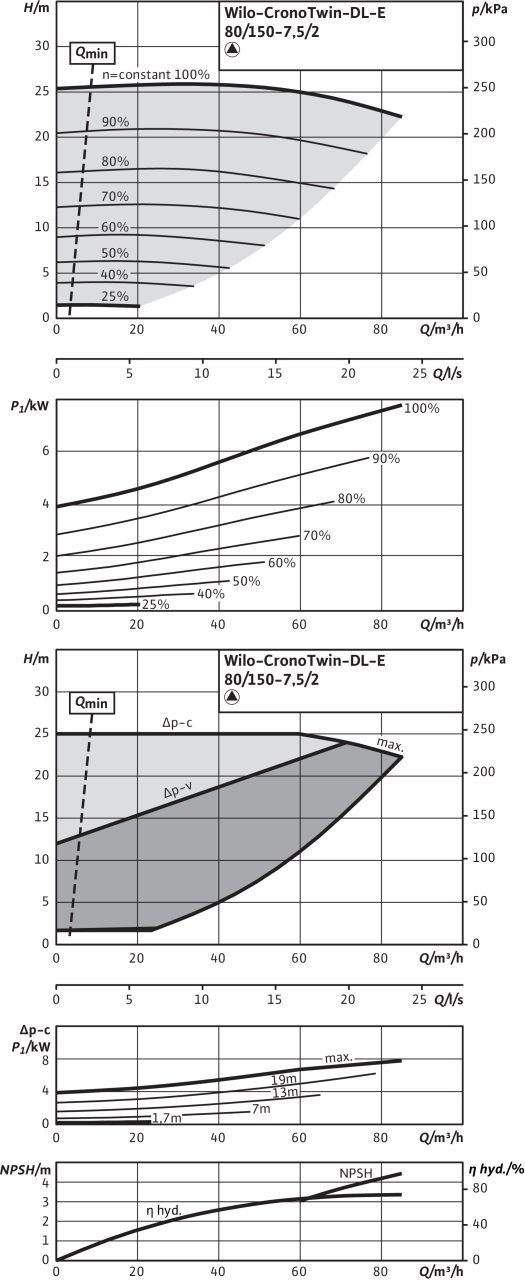 Технический паспорт Характеристики 2-полюсный, работа одного насоса Допустимая перекачиваемая среда (другие среды по запросу) Вода систем отопления (согласно VDI 2035) • Водогликолевая смесь (при доле гликоля 20-40 об. % и температуре перекачиваемой...