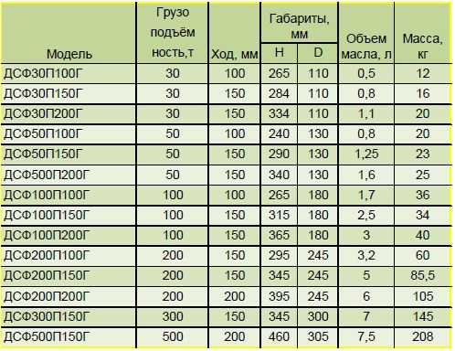 Домкраты с фиксирующей гайкой модели от ДСФ30П100Г до ДСФ500П150Г - серийно выпускаемые модели домкратов.