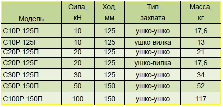 Домкраты тянущие(стяжки) модели от С10Р 125П до С100Р 150П - серийно выпускаемые модели стяжек.