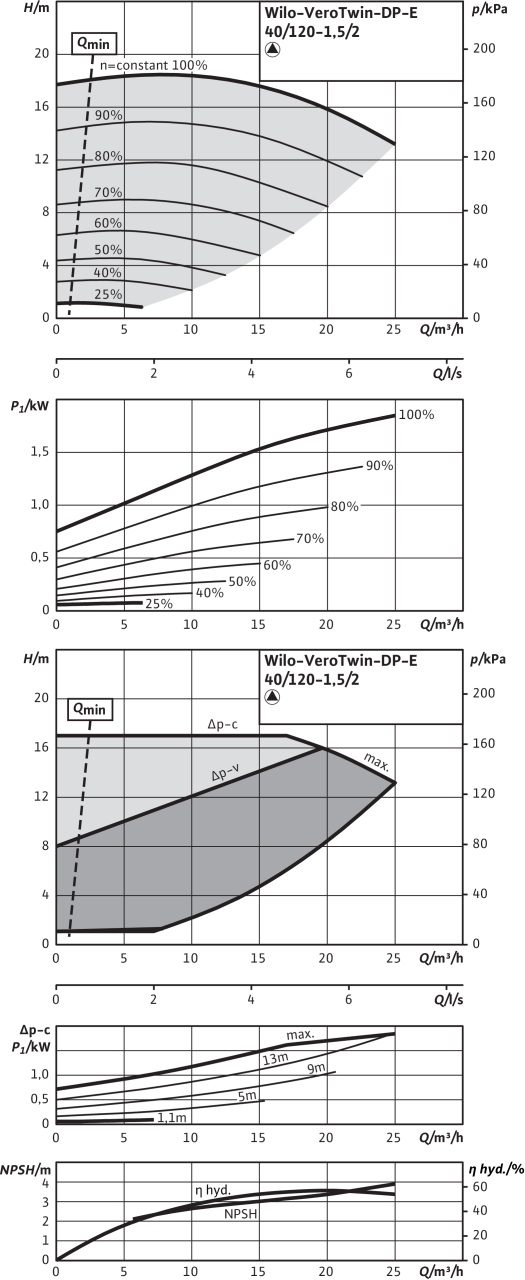 | Диапазон температур при макс. температуре окружающей среды +40 В°C | -20...+120 В°C (в зависимости от перекачиваемой среды) |