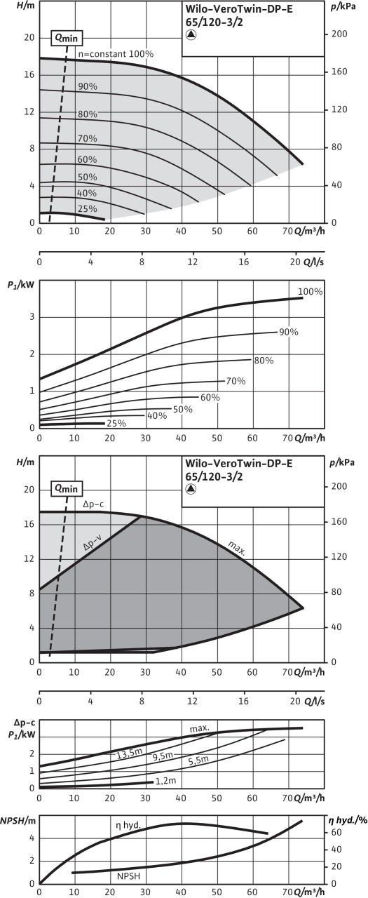 | Диапазон температур при макс. температуре окружающей среды +40 В°C | -20...+120 В°C (в зависимости от перекачиваемой среды) |