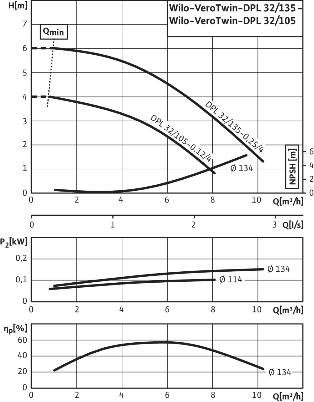 Насос с макс. диаметром рабочего колеса для определения MEIIPL32/135-0,25/4
