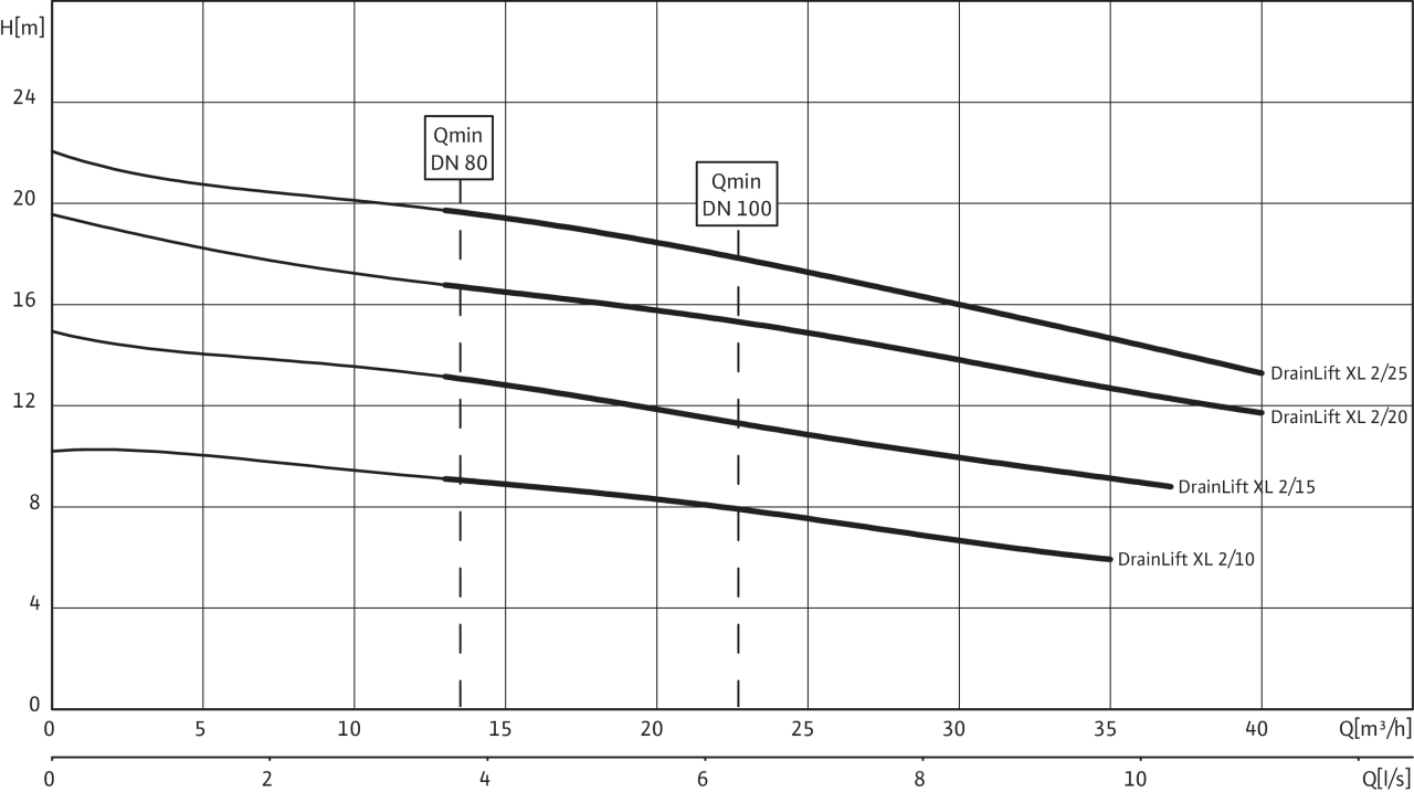 Характеристики Wilo-DrainLift XL - 50 Гц - 2900 об/мин