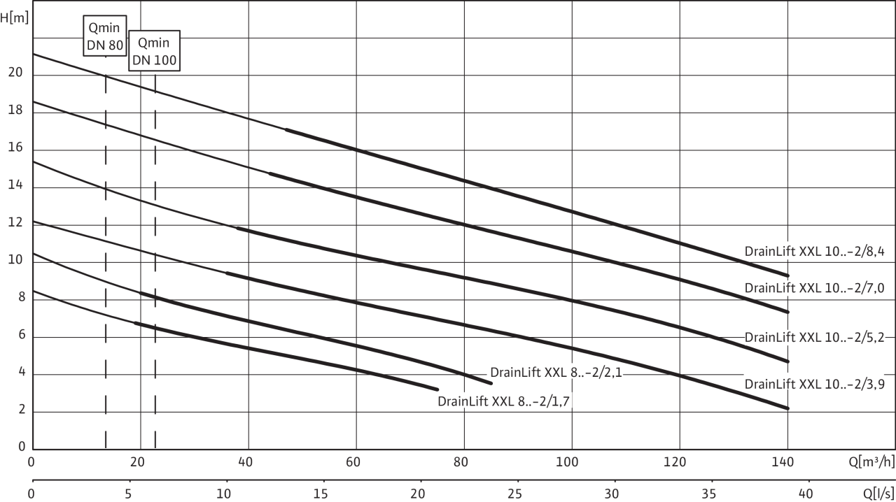 Характеристики Wilo-DrainLift XXL - 50 Гц - 1450 об/мин